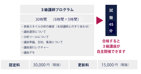 - 骨格スタイルアドバイザー認定講座【3級】を開催することが可能となります。