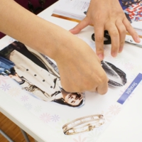 骨格スタイル別のアイテムを判別しながらファッション雑誌を切り貼りし、スタイル別のアイテムやコーディネートを把握します。