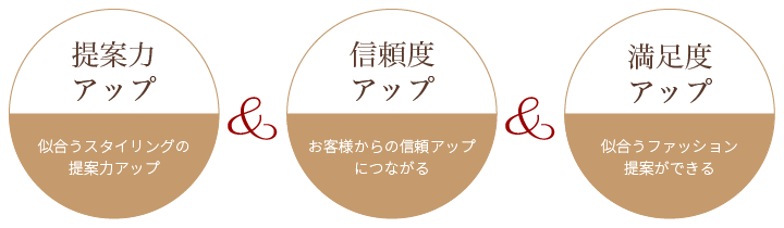 骨格スタイル協会では、ファッション販売・企画デザイン、百貨店やショッピングモール、ヘアメイクをはじめとした美容業界の方々向けに、クライアント様のご要望に応じた研修をご提供いたします。