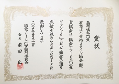 当協会は、協会アワード2015において「話題性部門賞」を受賞しました。